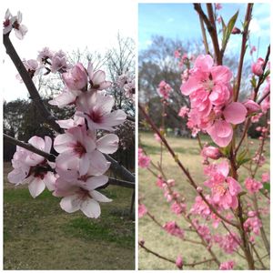 昨日の写真です 左 アーモンド 右 花モモ テレビでアーモンドの咲いている報道を見て鶴見緑地に行ってきました 花が見られる事が幸せ💕