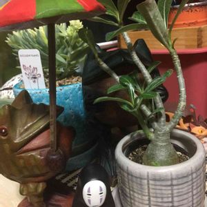 こんばんは💫 ファームさんで諦めたアデニウム… 800円だったんだけど小さくてポッテリもしてなかったから購入しなかったんだけど… まさかのイオンで760円(´⊙ω⊙`)なぬっ‼️ しかもポッテリさん😍💕💕 なんて可愛いのでしょう❤️ カオナシにそっくり(笑)(笑) カエルたちも🐸🐸 お出迎えしてます♪♪ さぁ‼️調べるために昨日買ったテキスト読むぞ(´⊙ω⊙`)😳😳😳😳😳 ちなみにこの鉢には植え直しません💦 来週、鉢が届くのです∑(゚Д゚) 待てるかな💦💦