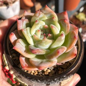子達が帰宅する前に❣️ タニパト♪♪ 桃娘… ヤバすぎる😍❤️ こんな紅葉するなんてズルい😆😆 もう可愛すぎて❣️ って植え替え…まだあるなぁ😩 購入してから今まで植え替えてない多肉もあったり🤭ただ、その方が生き延びる確率は高いと思うのはパンダだけかな🐼