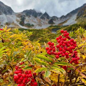 ヒュッテまで道なりに真っ赤なナナカマドが🔴🔴🔴 雨の中の山歩きでしたが気持ちを高めてくれました❣️ 山彦蝶さんにウラジロナナカマドと教えていただき🏷名前を変更しました☺️
