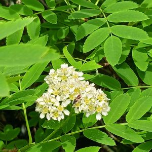 7月上旬 ゆ📖ウラジロナナカマド 葉は奇数羽状複葉で小葉は4~6対。 下から3分の1までは鋸歯がなく、裏面は白っぽい。