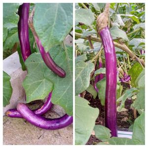 凄〜く長いナス。農園にて💜 どうやって食べたらいいのかなぁ💜💜😄