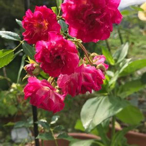 雨が降り出して来ましたよ〜☔️ 濃いピンク色が咲いています 雨で倒れるかも😣