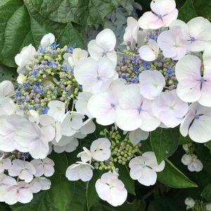 ヤマアジサイを日陰に置いて真白だったので日向ぼっこさせてようやく色付き始めました😊