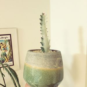 ユーフォルビア ホワイトゴースト 店頭でコレの大株を見た旦那が「カッコイイね」と言ったので(無理やり言わせた) おチビさんを連れ帰りました(´艸`) 葉っぱのピロピロした感じは可愛いのに 根元は乳白色&グレーとカッコイイ 早く「ウデ」生えますように