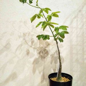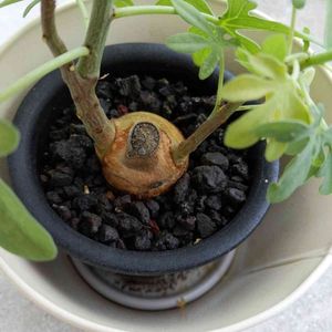 アデニアグラウカの葉っぱが黄色に。 毎年ギリギリまでねばるんですが、 撮影📷後にバッサリつるを✂️カット。 どうせもう成長は無いでしょうし😓 うちのコーデックスの中で今年 一番期待外れだったのがアデニアグラウカ。 一年間で1ミリも大きくなっていない😓 むしろ気温が下がってからの断水で? 6ミリ縮んでる😅 今年から強風🌀を避けるために 室内で育てるように置き場を かえたのも良くなかったかな~😓 春の新芽🌱の頃に植え替えて 刺激を与えてみるか😔 根っこだけは土から飛び出すほど 元気に育ってますから。