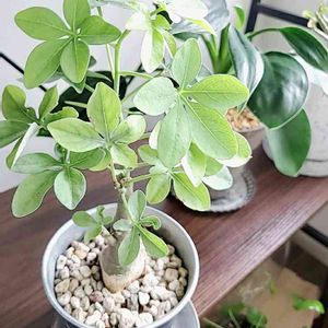 アデニア・グラウカ🤩 今日 お迎えしちゃいました。 今月は植物に結構お金使ったので しばらく購入は自粛しようと思っていた矢先に出逢ってしもた💦 私の近辺では あまり出回っておらず、たまに見掛けるとビックリするお値段で手が届かず… このコは3号鉢で お財布に優しいお値段🎵 そんな条件で☆りん☆が お迎えしないはずはないっ‼️🤣 という言い訳です、ハイ…