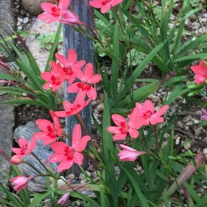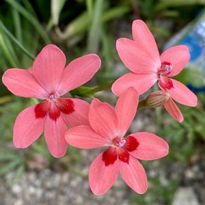 通勤時の嬉しい発見。 そろそろかなあ と思ってたら今年も同じ場所に咲いてくれました。 前日見た時は、つぼみにも気付かなかったのに。 フリージア ラクサとも ラペイロージアor ヒメヒオウギアヤメor フリージアラクサ であってますかね😅