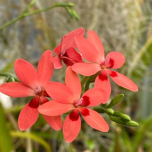 屋外ではまだ蕾もありませんが、ハウス内では咲き始めました。 球根植物ですが、こぼれ種からもドンドン増えるので、ハウス内の床に一杯育っています。