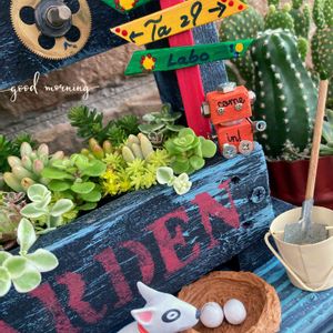 🍀寄せ植え🍀 素敵便で頂いたステキなリメ缶に植えた寄せ植えが元気よく育ってきました✨ とっても可愛いです😊 ありがとぅ〜💕 👶🤖ママー💕ふかふかで気持ちいいー 👩🦰🤖今日はここでのんびりお昼寝しちゃおうか (⑉︎ꂧ͂◡︎ꂧ͂⑉︎)゚・*:.。. .。.:*・゜