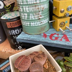 🍀リトープスさん🍀 去年の冬に離れて暮らす息子がお土産で買ってきてくれたのだけど✨ 無事冬は越した😊 さぁリトープスの夏越し💪 断水するってホント? 恐る恐る初めての夏越し💦 お水あげたいけどガマンガマン😅 脱皮した皮取りたいけどくっついてて取れないー😅でも取りたーい😁