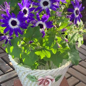 1月17日 晴れ☀️.° サントリーフラワーズ セネッテイ ラベンダーバイカラー&ブルーバイカラー ここ2日ばかりお天気悪くて 1歩も外に出れず納戸に待機中のおふたかた ショボーン━━(´・ω・`)━━** っとしているだろうと思いきや… オォ?""(°͈ᗜ°͈ )Ξ( °͈ᗜ°͈)""オォ? 知らぬ間に大きくなって Σ(゚Д゚υ)イル!!