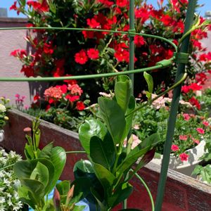 6月26日 快晴😎 サントリーフラワーズ公式アンバサダー 第4弾苗 サンパラソル 成長報告 5月28日植え付けから約4週間 確実に背が伸びているようですー🎵 葉っぱ🌱がちょっと傷んでいて 心配🫤していたクリムゾンもだいぶ元気に〜🙄 スカーレットは 何も教えてないのに支柱に クルクル巻き出しましたー😙 強風💨がかなり 吹き荒れていたので 焦って掴まったのかな⁇🧐 …なんて想像しながら ひとりほくそ笑んでますー😄