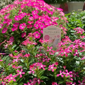 7月5日 快晴☀️ サントリーフラワーズ公式アンバサダー 第4弾 フェアリースター パステルピンク 植え付けから約36日 鉢いっぱいに フェアリー🧚♀️🧚🧚♂️たちが〜🎵 グリーンの葉っぱの色と パステルピンクの小さなお花の コントラストが可愛いです〜💓💓💓 ただ…。 気になることが… ピンクのお花に白いシミが…⁉️ 紫外線のせい⁇ 雨にあたったせい⁇ もしかしてうどん⁇⁇ いゃ〜ん‼︎ シミは大敵よー‼︎😫