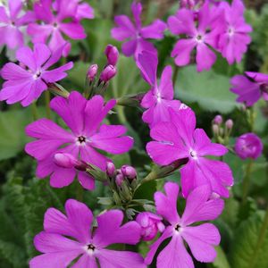 強風が吹く4月30日 サクラソウが咲き始めた 蕾を付けてないのも多い 日当たりが悪いから?
