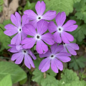 山野草🌿 ①〜④日本サクラソウ ③小紋 4年ほど前に近所の産直でお迎え。 消えたかと心配しましたが、今年も咲いてくれました♫ ④千代の梅 沢山お迎えした園芸種の中で唯一残ってくれています。 混雑している場所なので、植え替えたいけど大丈夫か不安です😔 ⑤ユキザサ(雪笹) 毎年咲いてくれる丈夫な子です🤍 目立たずひっそりと咲いています💞