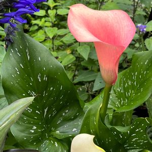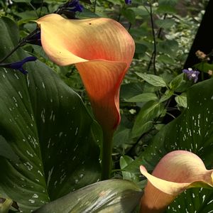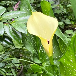 カラー カメオ✨⭐️雨の中☔️やっと咲きました…けど何か色が違う感じ🤨もっとアプリコットみたいなはず?🤔草丈は高めで70cmくらいあります❗️🙋🏻♀️