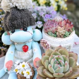 おはようございます☀ 久しぶりの🏷ソクモン祭りに参加します〜🐒 シロップさんのソクモンちゃん、何回も応募してたんだけど〜今回もダメもとで応募したら当選して GET出来ました〜⸜(*˙꒳˙*)⸝💓 やっぱり可愛いです〜😋 多肉はピンクシャンペーン×モンロー お水をあげた後見たら、カチカチモッチリです😀💖 ② ウチのクリスマスローズも ようやく咲きだしましたよ〜💕