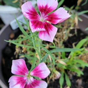 寄り添って💞 鉢植えのナデシコのお花が ふたつ 咲いていました☘️🌸🌸☘️🤗