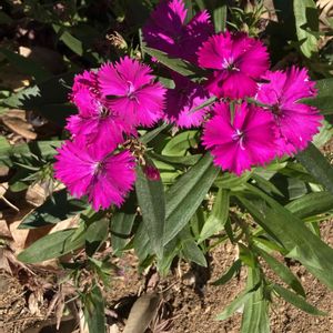 ナデシコのお花2色植えたのに 濃いピンクだけ元気です 2枚目も同じ濃いピンクポカポカ☺️🔆の時は眩しいですね(ˊᗜˋ)