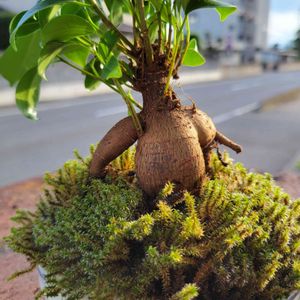 ガジュマル盆栽仕立風 ずっとやってみたかった✨ やっと可愛い子に出会えたのでチャレンジ🤭 ~テーマ~ 『草原で座り込み、思いに更ける私💕』 ちゃんとケト土とか使って丘にしたのに苔が長すぎて🤣 苔が定着したら短くカット✂️する予定✨ いやぁ~見れば見るほど猫背な私の背中にしか見えない🤣 お気に入りになった💕💕💕