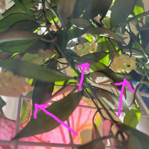 ホヤ・ラクノーサ🌱 朝日を浴びながら少しモヤった写真になってしまいましたが💦 大きめなつぼみが3つ💕 まだまだ小さなつぼみもあといくつかついてます✨ このまま成長して咲いてくれたらいいなぁ~ ラクノーサは甘い香りが開花を知らせてくれます😆