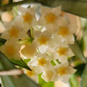 昨日投稿した ホヤ・ラクノーサ🌱 真ん中のつぼみが開き始めてました✨はやっ😲 まだ甘い香りはしないので本当に開き始め😊 んで、私この状態の花を初めて見ました😁 いつも香りで気付くからその時は丸くなってモフモフな感じになるんです💕