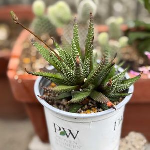 2024年4月からいる子。 多分ジュウニノマキ ちゃん。 スタンダードプロダクツの子ですが 2024年9月の時の方が青々として て元気。今、なんで赤いの? 花が咲くのかな?なんか出てる。 鉢だけPW……なんか 最近買わなくなったPW……