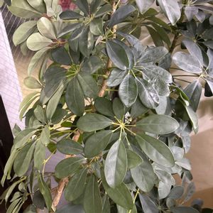 シェフレラくんの植え替え 土:観葉の土+赤玉鹿沼(古) 鉢:同じ鉢で土変えのみ 根っこが結構切れてしまったから、はっぱ3枚くらいカット 盆栽もどきとして小さい鉢のまま育ててる 割と元気がない 水やり難しい
