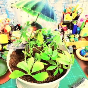 最低気温も下がってきたので ベランダの観葉植物を部屋の中へ🪴 この夏にシェフレラの仲間が3つほど仲間入り♡ 大きくしたいような、したくないような…🤭