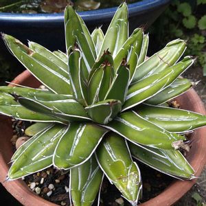 本日はお日柄もよく😚アガベ日和ということで… アガベをアップして行きます🤣 これは、まつぴよさんから頂いた😳😳😳 届いた時はビックリした デラックス便 笹の雪です。 アガベは、大きい株は発根に時間がかかる事もあります。 土との相性もあるので様子を見ながらです。 後もう少しお付き合い下さい☺️
