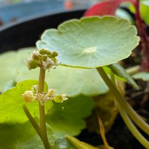 ウォーターマッシュルーム🪴 花友さんから頂きました。 先日まで外で管理してましたが、いよいよ寒さに負けてしおれてきたので慌てて室内に。そうしたら、花が咲いてきました🌼 凄く小さくて撮るのに苦労しました😅💦