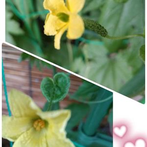 すこ〜しだけ、実を付けてきました😉✨🤍💚 ✨しろくまゴーヤ✨の葉っぱが 何とハート💚型 です🤗💕💖