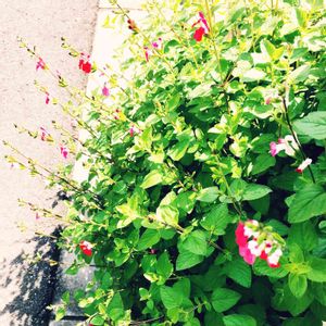チェリーセージ ホットリップス💋 蝶も蜂も来てくれる可愛いお花と、良い香りの葉っぱが大好きなのだけど、大株になり過ぎてまわりの植物たちがかわいそうな事になりがちなので、今年でサヨナラするかも😢