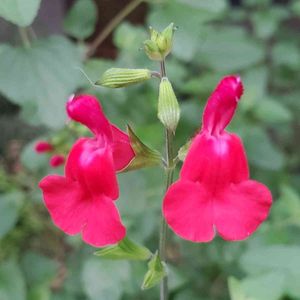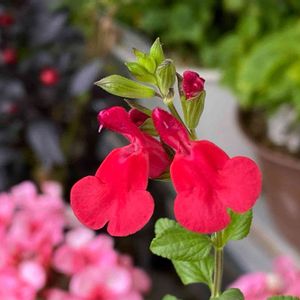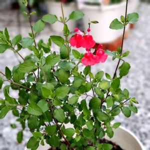 春に植え替えしたチェリーセージ ホットリップスがさきました☺️