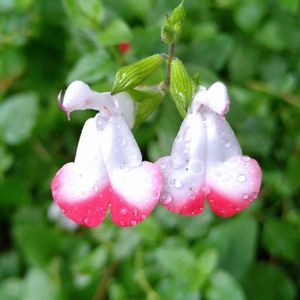 チェリーセージ・ホットリップス 紅白のチェリーセージ、かわいいです。 この他に、赤いチェリーセージがあります。