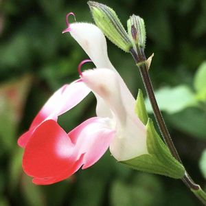 チェリーセージ(ホットリップス)赤と白で色変して可愛い💕気温が低い春は白の割合が多く、高くなると、赤の割合が多くなるって😍知ってました⁉️今何色が多いですか?
