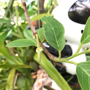 アテモヤ❇️💚 7月3日にGSフレンドのかずたかさんに頂いたアテモヤ❇️💚 受粉はするケド… マッチ棒の先ほどになると落下😱 その繰り返し…💧💧💧 この頃は 花芽も見えない😣 この子も 大きくなってるやら…🤔