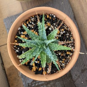 アロエ プラテンシスの交配種。 恐らく帝王波。 最初エイリアンかと思ったし、好みのネーミングとしてはエイリアンであって欲しかったが、葉の模様が違った。調べていくうちに帝王波が一番近かった。 どちらにしても情報が少ない品種だった。 22日からアロエネタが続いている( ^_^ ;)
