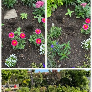 こんにちは😊 今日の阪神地方は梅雨入り前、最後の晴れ間の様です‼︎ ❶先日植栽したボランティア花壇が気になって買い物前によってみたら『花泥棒』が来てました😡 ジニア2株、ペンタス2株 どちらも立派な苗だったのに… 悔しーい‼️ ❷❸ボランティア花壇のある公園に今年から「睡蓮」が置かれてます。「メダカ」もいて子どもたちに人気のようです♪ ❹毎年キレイに咲く「トキワヤマボウシ」