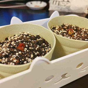 【アボカド土植えその後】 6月16日に外皮がついたまま土植えしたアボカド①②と、6月19日に外皮をむいて土植えしたアボカド③。 外皮をむいた方が早く芽を出すということらしく、それでも気長に待っていたら、外皮をむいた種③はひと月後に芽が出てきた🌱✨①と②は全く変化なくその後ひと月が経過。「簡単ではないな〜。ダメかもな〜」なんて思っていた先日。外皮付き②の外皮が割れていることに気づいたよ👀⁉️ すぐに外皮をむいて放置。台風で天気が安定しない中、ベランダに出て観察したら芽が出てきてる〜🤗🌱✨そしてそして外皮付き①は外皮が割れているではないかっ😆早速、外皮をむいてあげましたとさ。 めでたしめでたし😸