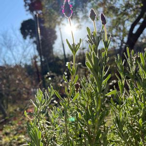 フレンチラベンダー 朝日を浴びて🌅💕 夏に枯れそうでしたが どうにか 咲いてくれました。🤗