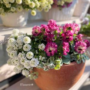 11月に植えたミルフルの寄植え♪ アリッサムとも馴染んできて とても可愛いです(୨୧•͈ᴗ•͈)◞💗✨ ミルフルは自然とふんわり丸〜く 整ってくれるので育てやすいです..✽.:*