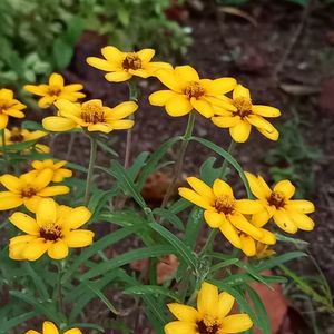 公園の花壇 検索したら 細葉百日草と 夕暮れでも 黄色花は 鮮やかな被写体ですね🤭