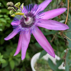 トケイソウ 紅色が、咲きました。蕾に気づかなかったから、突然で嬉しいです。 シュウメイギク 白も咲いてきました。葉は、茶色く傷んています。好きな白です。