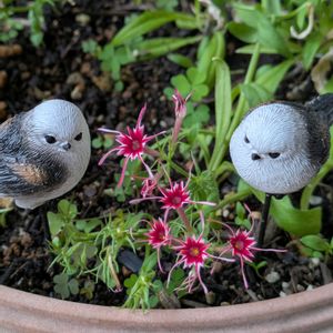 星咲きフロックスを見つめるシマエナガ こぼれ種の発芽を見つめる青い小鳥
