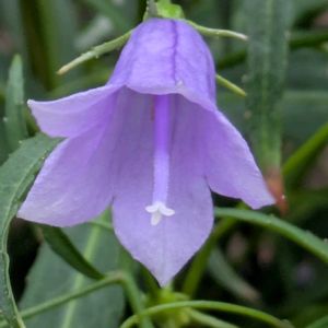 イワシャジン かなり咲いてきました。 チューリップを埋めるために耕し途中の土の上に置きました。