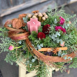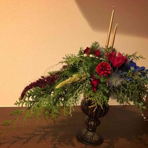 クリスマスアレンジ先生作🎄 グリーンは沢山の種類が入っています ドライのケイトウがシックな色合い とってもいい香り〜✨