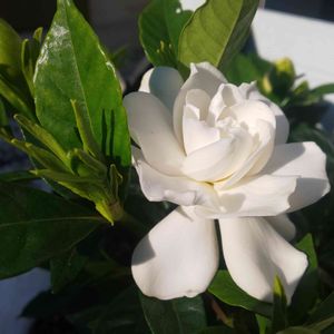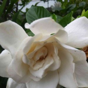 八重咲きのくちなし(ガーデニア)の一番花が咲きました! 甘い香りを漂わせています。