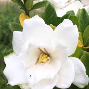 クチナシの花が咲きました! 甘い香りに誘われて、すぐにちっちゃい虫がよってきます。